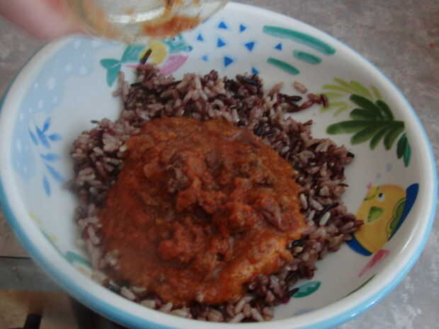 I sólo microondas mi porción de la salsa, vierte sobre mi arroz, mezclar bien y disfrutar!