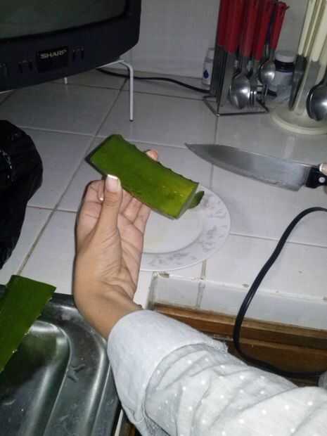 ¡ Hola!Hace días hice una bebida de Aloe Vera.Es muy sencillo y lo puedes hacer en casa.Paso 1: Se necesita AzúcarAguaAloe VeraCuchilloBotePaso 2: Pelar la piel Pelar la piel del aloe vera.Tenga cuidado de las manos.Es realmente resbaladizo, fangoso