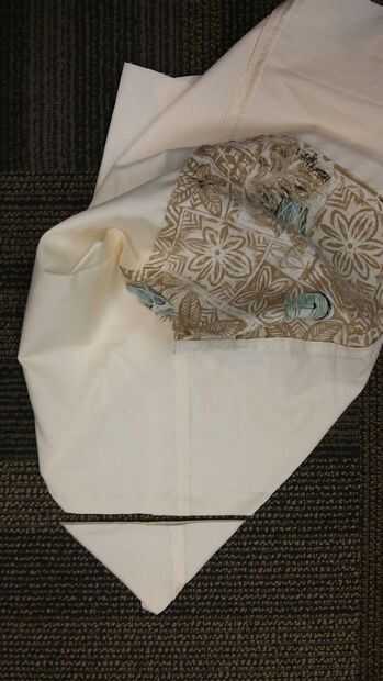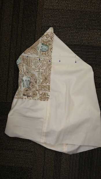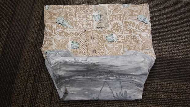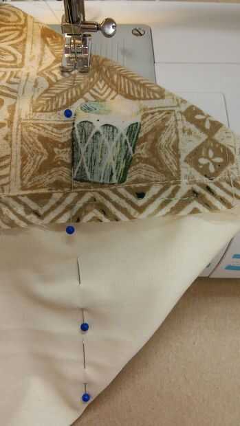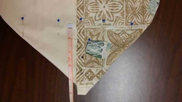 Abrir los lados y esquinas de clavija plana. Coser a través de 4" por encima de las esquinas. Corte las esquinas apagado, dejando margen de costura de 1/2. Reforzar la costura.