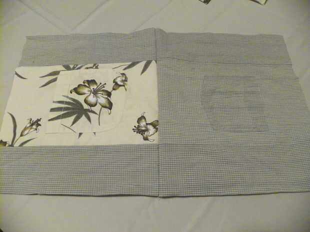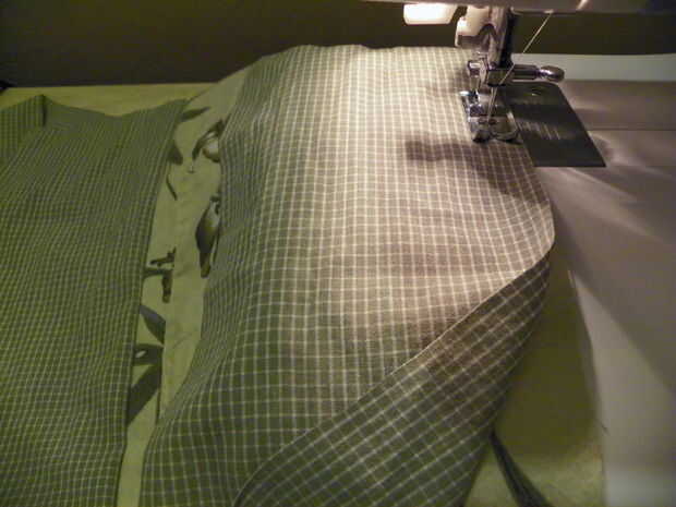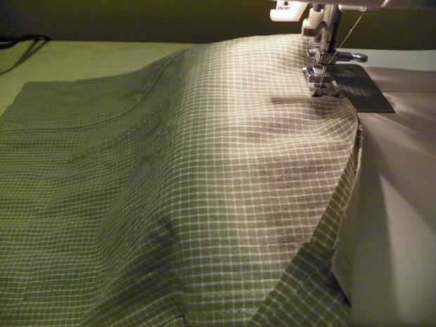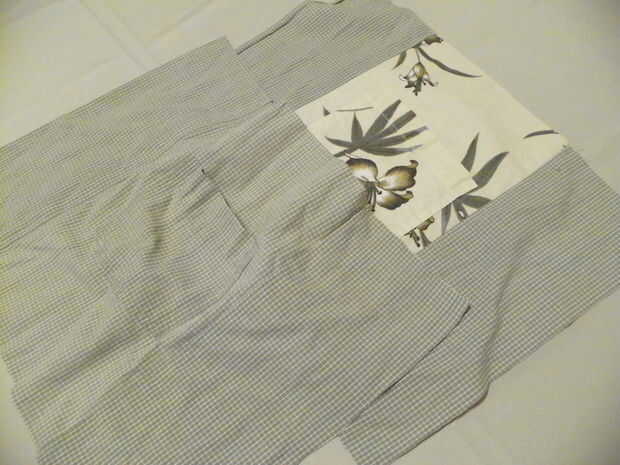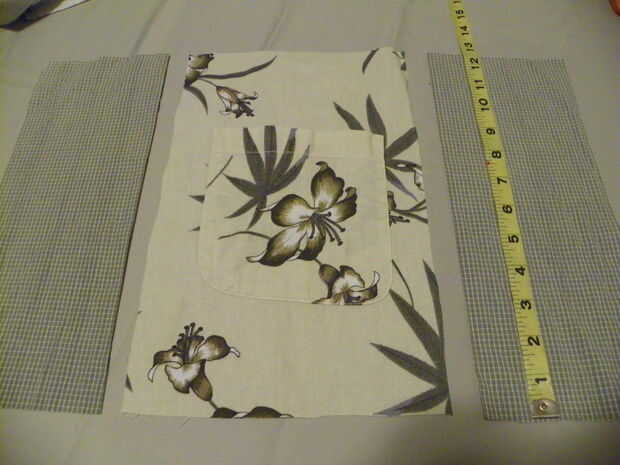 En las secciones izquierdas delanteras de las camisetas utilizará las bolsas en el revestimiento de la bolsa. Mida 4" sobre la parte superior del bolsillo y pin. De este pin, medida 12" abajo, pin. Ubique el centro de los bolsillos y mida 4" a cada lado. Marque con alfileres. Cortar cada pieza del bolsillo, 12" x 8" de ancho alto. Cortar 4 piezas (2 para cada lado de cada bolsillo) 5 "x 12". Coser a los lados de cada bolsillo con margen de costura de 1/2". Pulse sobre un lado y puntada. PIN a ambos lados del forro derecho contra derecho y coser en la parte inferior. 1/2 subsidio de costura. Abrir y presione la costura abierta. Plegar y coser las costuras laterales con costura de 1/2". Presione abrir.