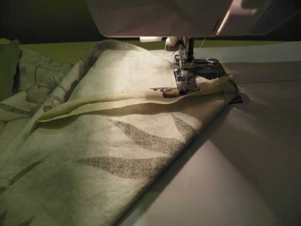 abrir la sección de la bolsa y colocar la costura lateral contra el pliegue de la parte inferior. Coser a través de 2" por encima del punto. Repita en el otro lado. Lo mismo para el forro. al llegar las 4 esquinas cosidas, enganche las esquinas apagado.