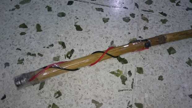 Ejecutar los cables en el extremo de la manija de la varilla en estilo zig-zag a la posición de mi puntero al sostener la varita. Soldar los cables a un interruptor momentáneo. Así que tienes los cables negro y rojo en el interruptor momentáneo. Ahora corte el cable negro en el extremo del bambú (el extremo de la manija). Apilar dos o tres pilas de moneda en serie (yo usé LR44) sobre un extremo del cable negro. Coloque el otro extremo del cable negro en la cima de las pilas. En resumen los cables van así, alambre de resistencia va al negativo de la batería. Positivo de la batería va al interruptor momentáneo. Desde el interruptor momentáneo, el cable va al pin del ánodo del transmisor de infrarrojos LED. Eso es todo. Enrolle los cables con cinta marrón para dar el mismo color con el bambú. Los cables de paso dan más arte a la varita y hacen un mejor agarre.