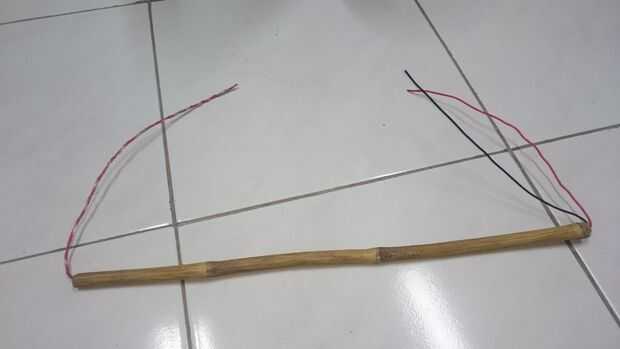 Obtener un par de cables a través del bambú. Tratar de encontrar un cables de calibre más pequeño. Retirar la chaqueta del cable negro para conseguir a través.
