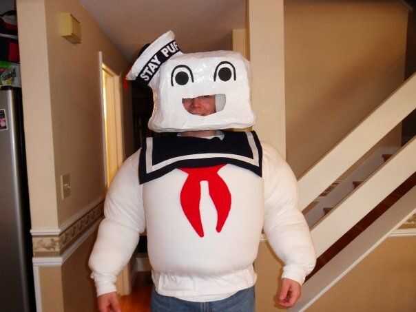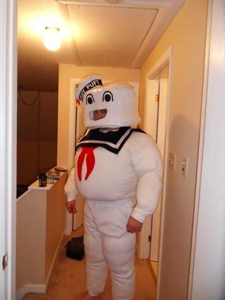 Para la camisa, tomé dos almohadas, una en la parte delantera y uno en la espalda. Puse entre las camisas y coser la parte superior e inferior de la camisa cerrada. Yo entonces cosieron los dos puños y luego poner el relleno hacia abajo de los brazos. Sobre a medio camino para arriba cada brazo cosí las camisas juntas para hacer un "rollo de grasa". Luego poner más relleno para arriba en el hombro y cosido cerrado otra vez.