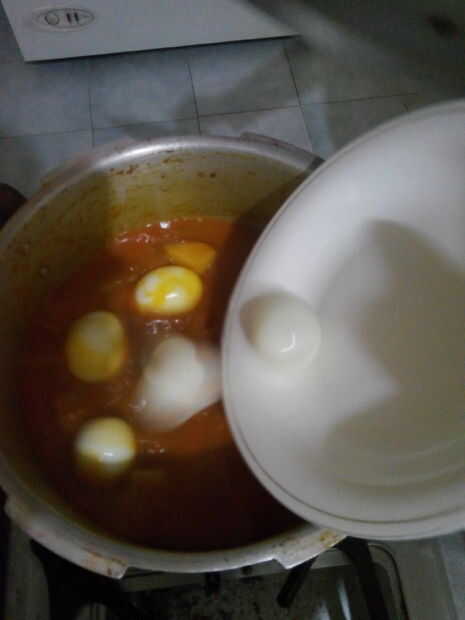 y sin encender la estufa. el aroma se filtrará en los huevos.
