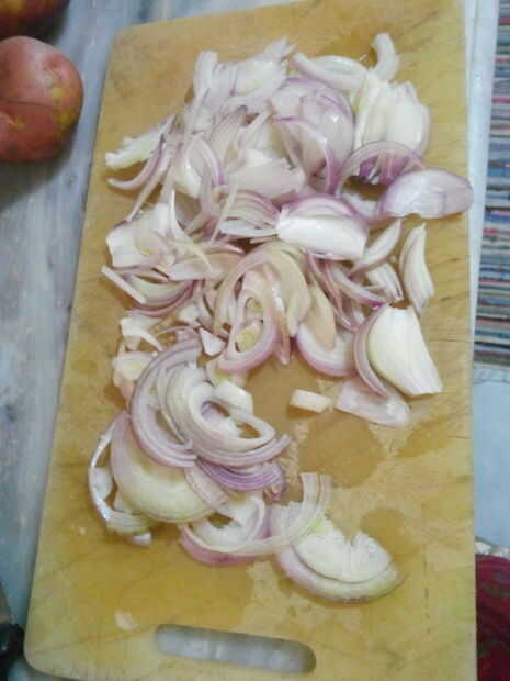 Patatas y huevosTiempo de preparación: 10 minutosTiempo de cocción: 10-15 minutos* Mi abuela uso para hacer este plato para el desayuno o almuerzo, es uno de nuestro favoritos f oods! Es una comida fácil y barata de hacer y limpiar!Fuentes: (pan, cuc