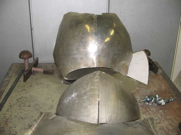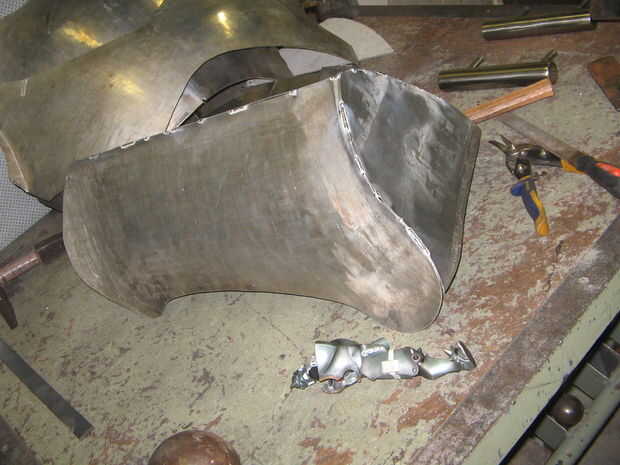 Mi proyecto actual, el traje de Alphonse Elric de la armadura del anime Full Metal Alchemist. No tengo particular interés en la fabricación de armadura pero pensé que sería una gran manera de practicar mi formar metal. También aprendí a hacer cota de malla podía llenar algunas de las lagunas, entre los brazos, las axilas piernas etc. no es usable, más de una pantalla estática. Una vez terminada estará a unos 2 metros de altura.