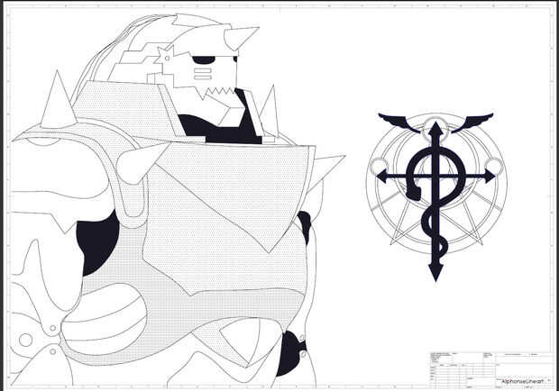 Empecé con un modelo de plástico de Alphonse, utilizando para hacer los patrones para todas las partes que tengo que hacer. Simplemente utilicé cinta de enmascarar para replicar cada cara de las partes. Luego analizan en y escalado para arriba, rastreo de solidoworks para hacer los patrones. Entonces yo tenía impreso a escala 1:1 en papel A1. Era entonces una simple cuestión de cortar y pegar a la hoja de alu y corte hacia fuera.