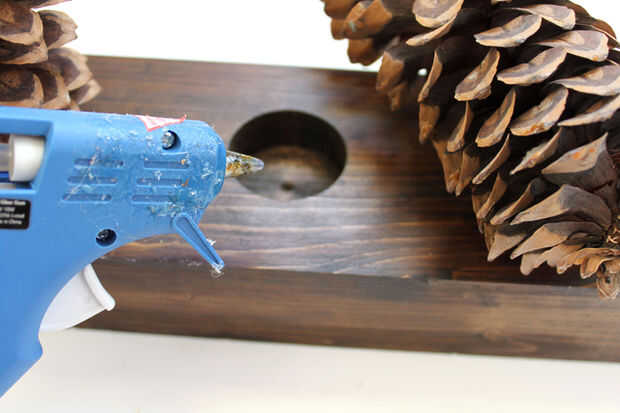 Con pistola encoladora o con pegamento blanco, pegamento sus piñas en su lugar y dejar de lado.