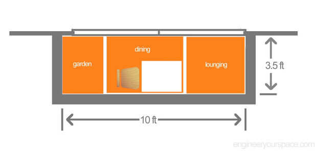 Luego vino muebles y accesorios: quería crear un espacio para descansar, comer y un pequeño jardín y todo tuvo que encajar mi balcón 10 x 3,5 pies. Esto requirió algunos muebles de bricolaje.