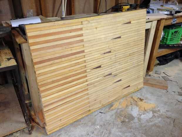 que quería hacer una mesa de comedor que duraría toda la vida. Había disfrutado de tener muebles de bambú en nuestra oficina y tuve un montón de 1'x 8' longitud para trabajar con. Usé un chorro de agua por OMAX para todos de la corte para experimenta