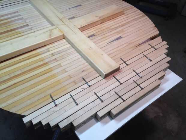 Alrededor de la mesa de comedor de madera bolera (3 / 5 paso)