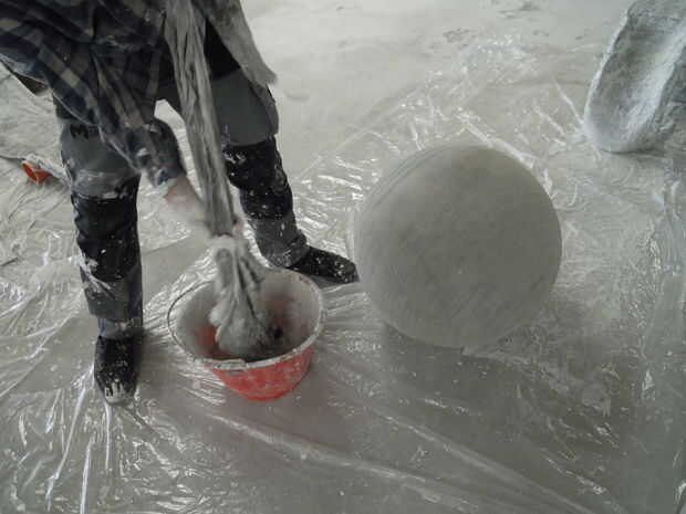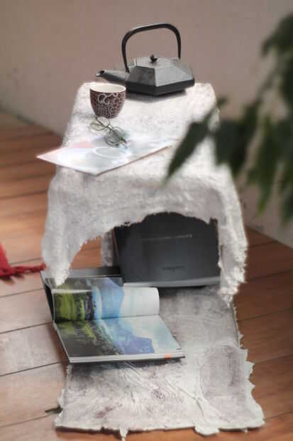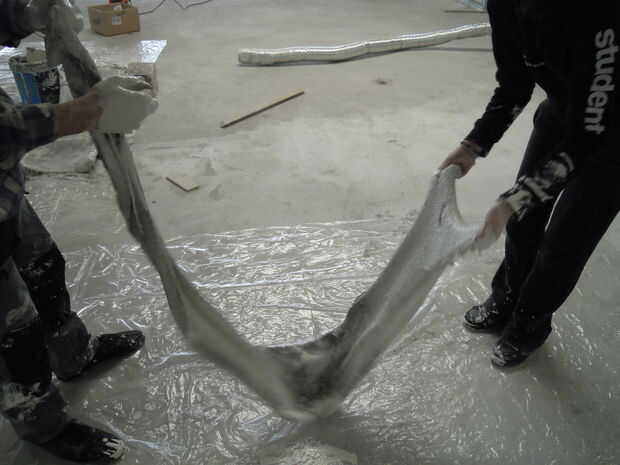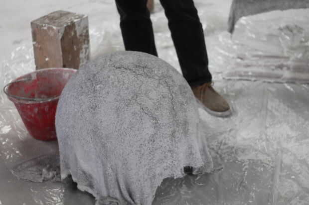 Conceptualizar lo que es el mejor tipo de tela y lo concreto utilizan lo bastante duro pero al final hemos utilizado una tela de lana 50% y hormigón blanco.