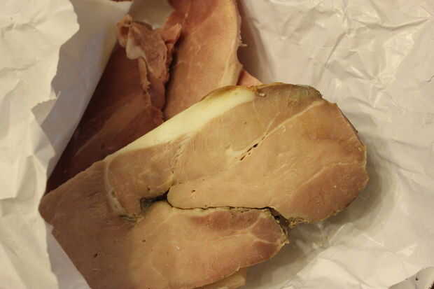 Jamón - he utilizado dos tipos en esta pizza, cortan tiras de un talón de jambon braisé blanc y jambon et ahumado (jamón cocido y ahumado). Flammkuchen cocinado de forma tradicional tiene un ligero sabor ahumado de la parte inferior del horno de pan, jamón ahumado le da un sabor auténtico.