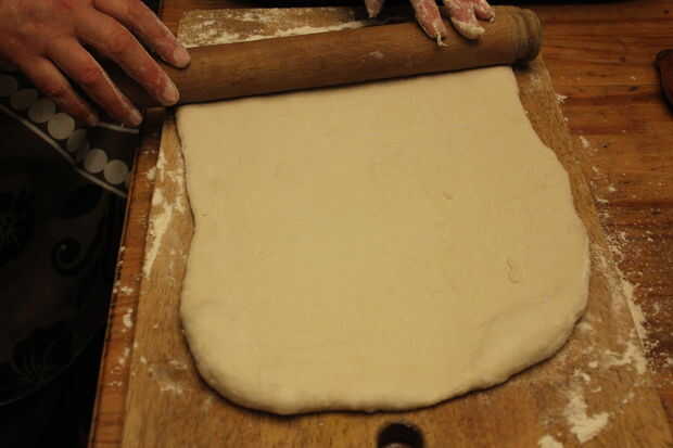 Cuando la masa esté lista, retírela de la sartén y golpear hacia atrás (golpear hacia abajo con las manos). Este es un proceso por el cual bióxido de carbono se extrae de la masa. Este es un pan plano por lo que no quiere a subir demasiado.