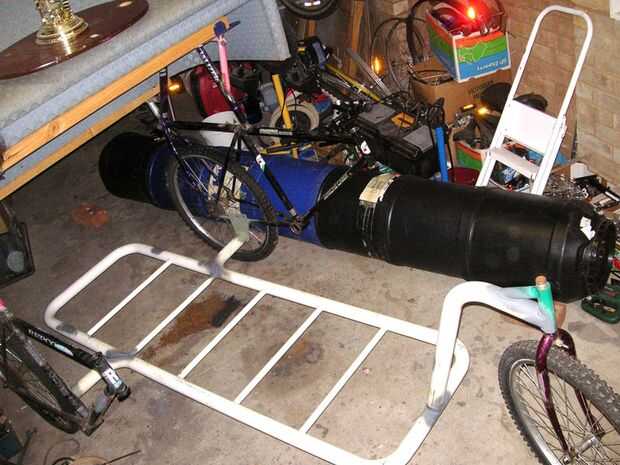 VIDEOEsta moto se transforma de una bicicleta alta baja chopper rider (y espalda) mientras te lo montas! Se realiza con una bicicleta de montaña con suspensión y un conjunto de amortiguadores a gas. La primavera en la bicicleta de montaña se retira p