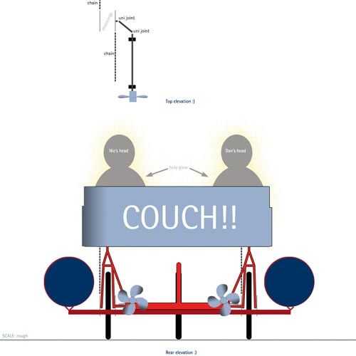 Así que una vez que el tren de la impulsión fue unido y trabajando, necesitábamos un sistema de propulsión aqua, mi idea era utilizar los propulsores, pero que habría quedar atrapados en las malas hierbas y esas cosas, bastante la molestia cuando todo lo que quieres hacer es tomar una cerveza.