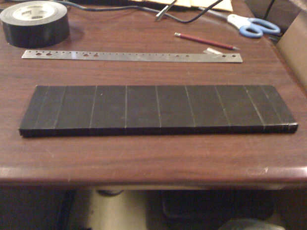 4) cubierta de la pila entera en cinta haciendo un tablón sólido. Asegúrese de cubrir todos los bordes. (Foto 4)