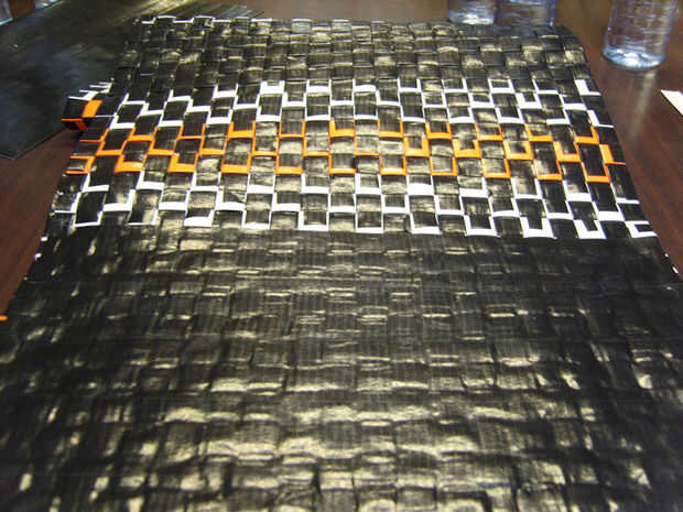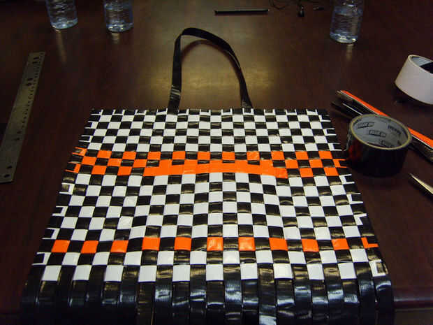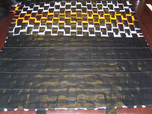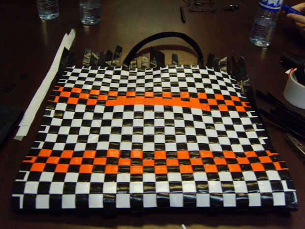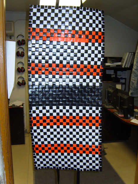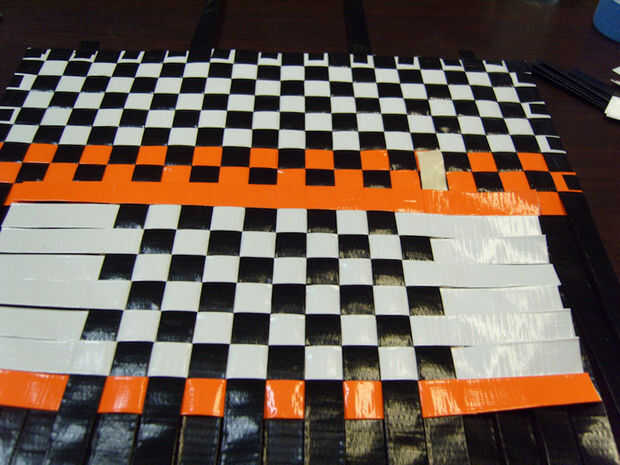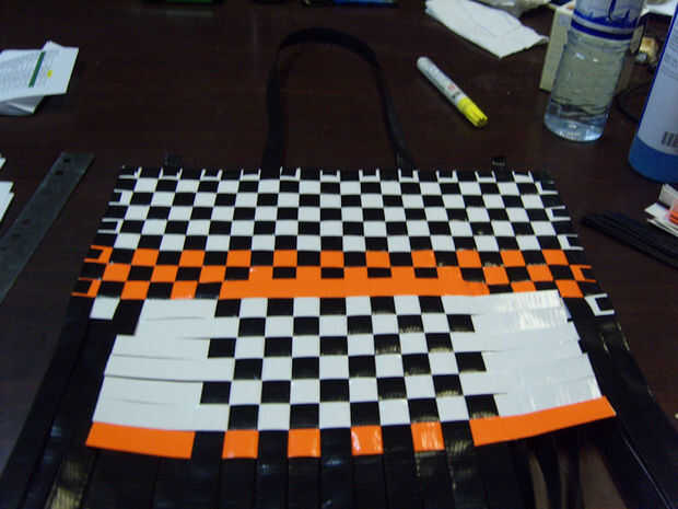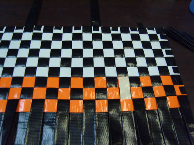 10) cuando finalmente llegue la marca a medio camino, verás que ha llegado al extremo de las tiras de mango. Tomar la 2 º 60" cinta y los extremos de las tiras entre sí. Y continuar el proceso de tejido. (Foto 6)