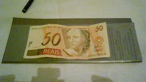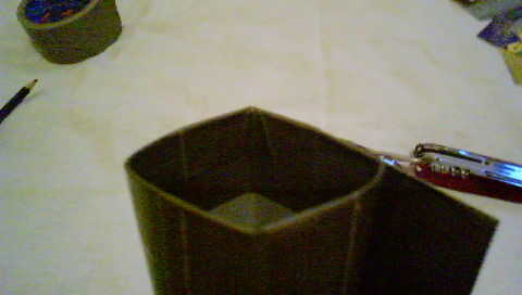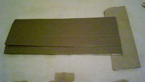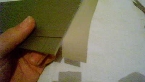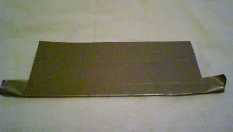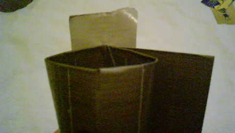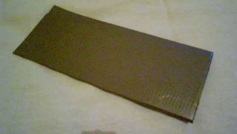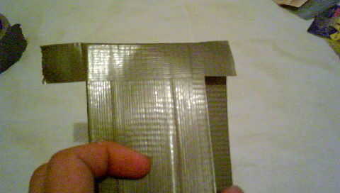 Cubrir todo el papel con cinta adhesiva. En la parte inferior, coloque un pedazo de cinta adhesiva y dejar la mitad de tamaño. Se usa para fijar el primer bolsillo y este juntos, como en la foto. Recorte el exceso de la parte cerrada y poner el exceso del lado abierto dentro del bolsillo primero.