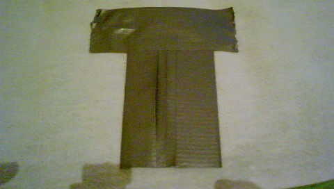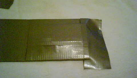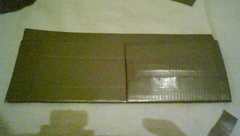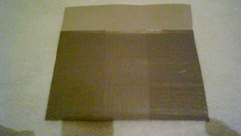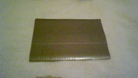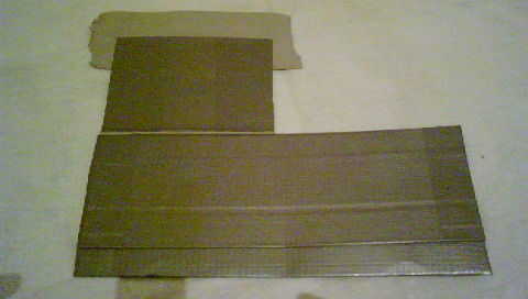 Cubrir todo el papel con cinta adhesiva. Tome un pedazo de cinta y dobla casi en el centro, dejando una pequeña parte de la cola hacia fuera. Colocar esta pieza en el lugar de la tarjeta primera y superior. Repita este proceso dos veces más para hacer otro titular de la tarjeta, teniendo cuidado de colocar las cintas hacia abajo y hacia abajo.