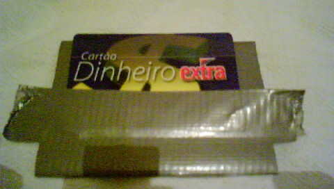 Fije al titular de la tarjeta en la cartera con cinta para tubos mitad en titular de la tarjeta y mitad en cartera por la parte inferior de la pieza.