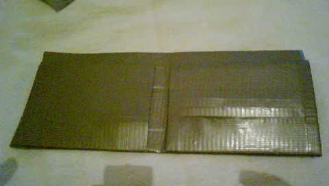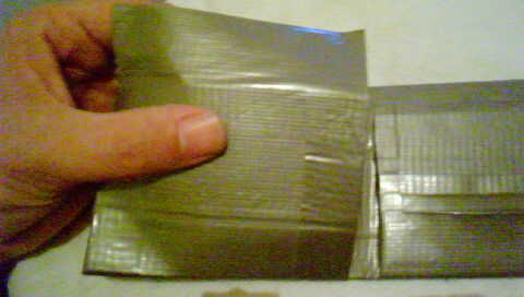 Tome otro pedazo de papel y cubrir con cinta adhesiva. Fijar con cinta adhesiva en la cartera por la parte inferior e inserte los excesos de otros lados dentro del bolsillo de dinero.