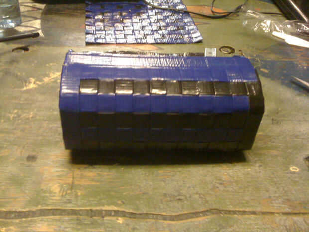 8) usando la misma cinta de color que es en la 1" barra, coloque una tira de cinta sobre el imán sostiene firmemente en su lugar y ocultarlo.