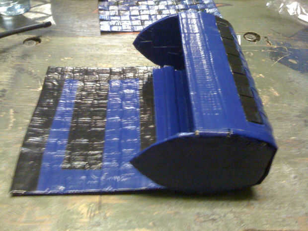 1) como que tensar la hoja a la siguiente barra transversal, colocas una 8.25" tira de la cinta (utilicé el mismo color como el solía cubrir el cartón) en el interior de la barra transversal. Presionar firmemente hacia abajo en los bordes y adherir al interior de la hoja. Asegurarse de sellar todas las grietas que pueden ser visibles.