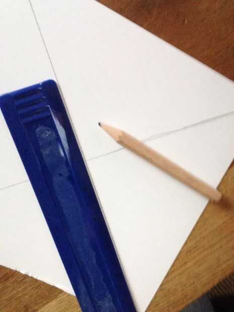 Después de separar los dos lados de la tarjeta, use su lápiz y regla para dibujar una línea diagonal desde cada esquina de cada tarjeta.