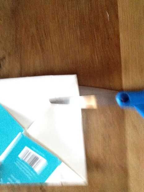 En cada esquina debería haber un cuadrado hecho por el plegamiento de la última etapa. ¿Sí? Ahora sostenga la tarjeta doblada para que los lados de él son horizontales y verticales (no en diagonal). Ahora utilice las tijeras para cortar un lado del cuadrado pequeño en la parte inferior derecha (lo siento si es confuso). Girar a 90 * y repita hasta que cada lado tiene una raja.