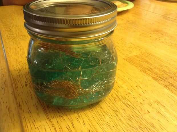 Como pasa el tiempo, el líquido en el frasco se convertirá en cada vez más azul. El color azul proviene de los iones de cobre en el acetato de cobre que se crea. Cuanto más tiempo dejas el cobre en la mezcla, será más azul y más saturada de la solución.