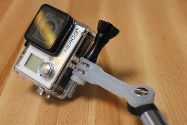 Encontré una lámpara de brazo de oscilación de una tienda y parecía que sería perfecto para el montaje de una GoPro a un casco. Así que, ya hackeado lejos y reverse engineered la conexión de la lámpara que tenía para recrear y modificar para montar la cámara. Con cuidado de medición con un calibrador digital y 3D una pieza de prueba rápida de la impresión para asegurarse de que las dimensiones eran todos correctos, hice el diseño para el soporte de GoPro.