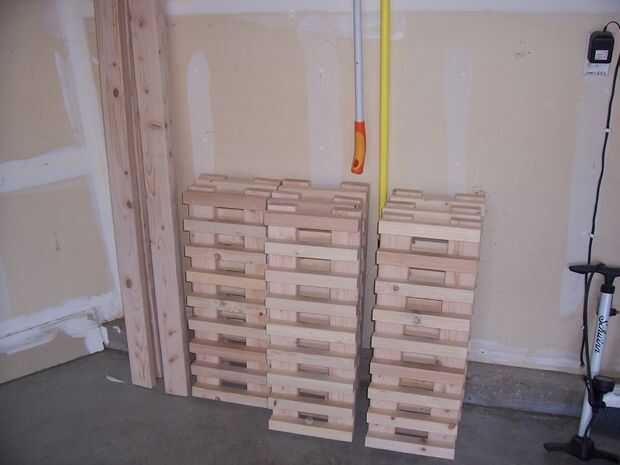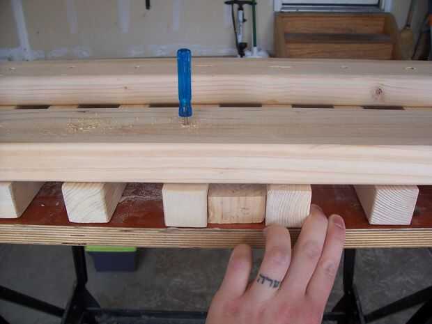 I taladrar pequeños agujeros piloto y luego usa los tornillos de 2". Para los tableros del espacio uniformemente he utilizado un trozo de madera cortado a 2" para no tener que medir cada espacio (como se ve en la segunda foto).