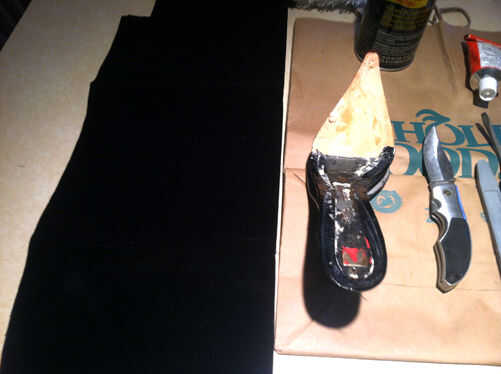 he añadido un fieltro negro en la parte superior donde estaba la cama de pie sólo cubrir el zapato entero. La cama de pie había sido tirada completamente primero.