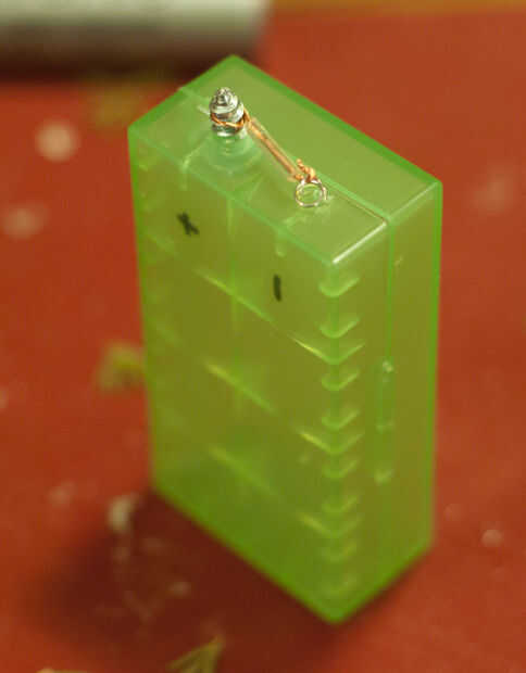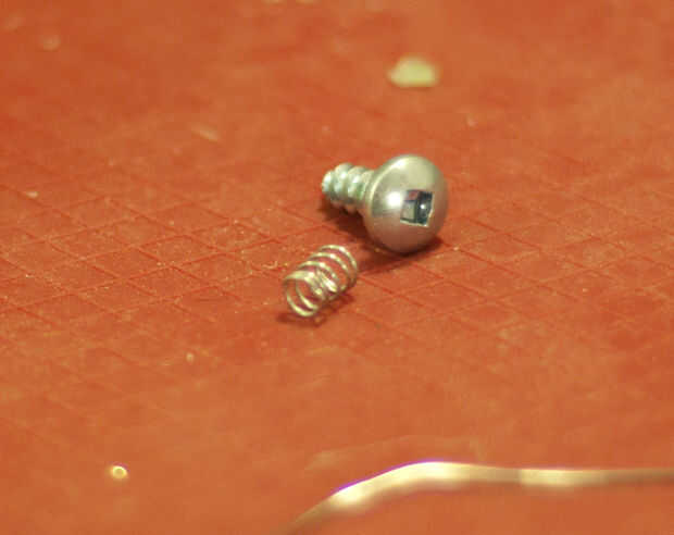 Paso 9: Un pedazo corto de alambre de la tira: tira de aproximadamente 1 pulgada de un lado y 1 cm de la otra. Enrolle la sección larga pelada por lo menos una vuelta completa alrededor una tornillo, que envuelve en sí mismo. Enrosque el otro extremo del alambre alrededor de la cercana primavera. La soldadura tanto en el lugar. Asegúrese de que la soldadura conecta el bucle del cable en el tornillo. Prueba de que el tornillo esté eléctricamente conectado a la primavera, con su multímetro. Tocar las puntas de prueba para el tornillo y el resorte (no a la soldadura o el cable--no desea omitir los puntos de soldadura).
