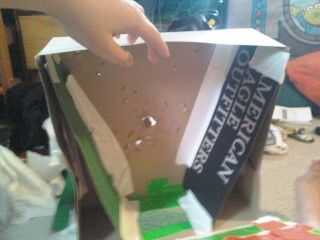 Ahora tomar su caja en forma de "el cubo" y añadir las tiras de cartón a la inside(see picture). Esto creará un canal inclinado para las municiones viajar hacia abajo en el depósito. Ahora corte un orificio donde terminan las tiras (esto es un poco difícil de explicar, la foto ayudará mucho). Ponga cinta para conductos las tiras a la caja de la cinta.