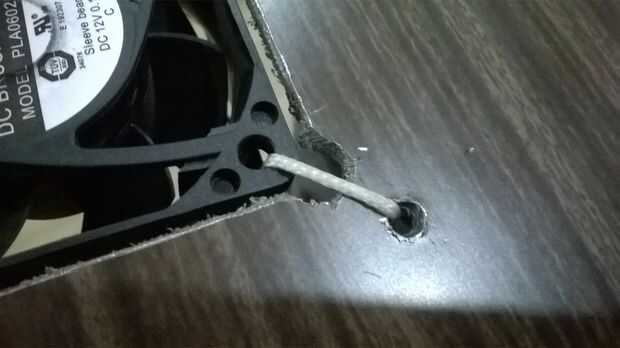 Coloque el ventilador en su lugar y asegúrelo con la amenaza. Asegúrese de que el ventilador no debe estar en contacto directo con el cuerpo y no hacer la conexión del hilo de rosca demasiado apretado. Mantenerlo ligeramente suelto.