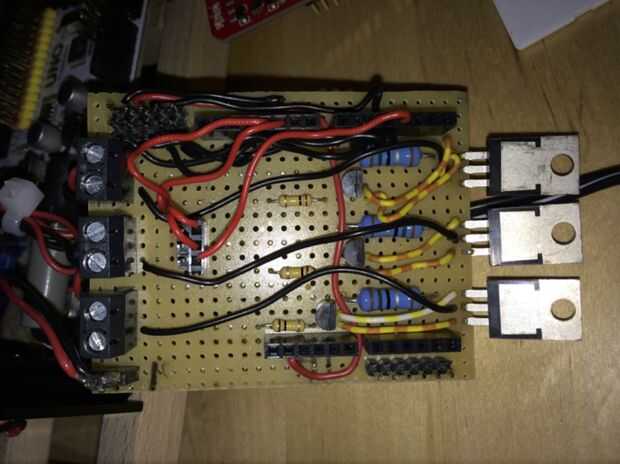 - (3) MOSFET, de canal N (Fairchild FQP50N06L por ejemplo)