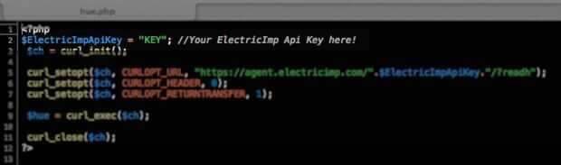 Necesitará editar cada uno de los archivos PHP resaltados aparece en la captura y en su clave de api de ElectricIMP allí (línea 2).