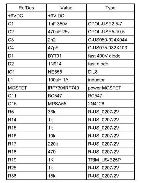 L1 es un inductor fijo 100 uH 1A, threeneuron enumera algunos modelos similares de la misma, y podría ser un poco diferentes en dimensiones, por lo que mi pcb tiene espacio para los componentes de cortos y largos.