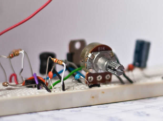 Para construir la placa prototipo siga el esquema (no la Junta) y el comienzo agregar el IC (el NE555 en este caso), conectar uno en el tiempo, añadir componentes cuando son necesarias, entonces conectar otros componentes entre sí y a Vin y a tierra. Verifique todo antes de conectar el circuito. También Compruebe que pines resistencias no toquen nada.