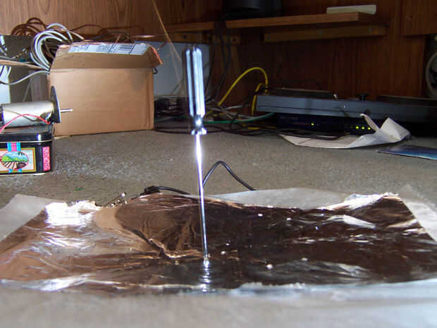 Utilicé mi cámara Digital de Kodak. Ciertamente no es la última cámara mayor en el mercado ya que he tenido durante unos años ahora. Me puso la cámara en modo manual y ajustar el tiempo de obturación de 1 segundo. Carga el flash, pulsado el botón obturador de la cámara y dejen el destornillador en el hacer pantalla sentado en la alfombra. Deseo que podría decir que tengo una gran imagen en el primer intento pero tuvo algo de práctica para obtener el derecho de sincronización.