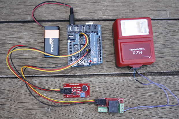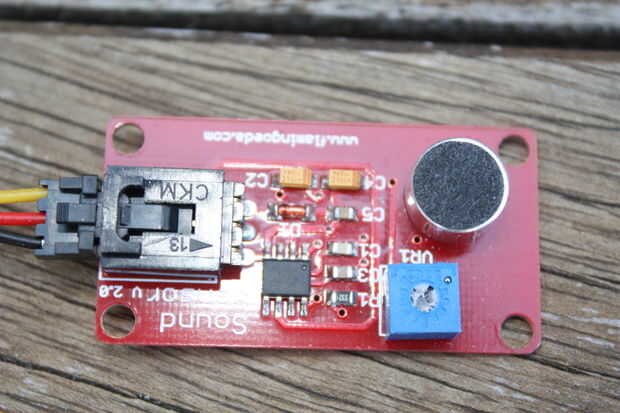 El sensor de sonido devuelve un 0 al 1024 valor, el relé puede ser controlado por un pin digital.