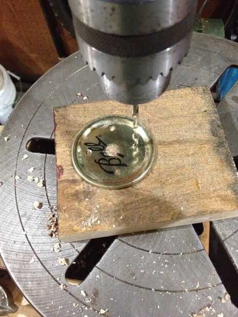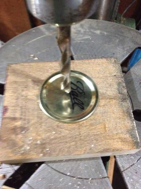 Perfore el orificio 25/64" cerca del centro de la tapa del tarro de masón. A continuación perforar 4 11/64" alrededor de 25/64" agujero. (no importa el tamaño de los agujeros de 11/64" que son respiraderos que experimento con diferentes tamaños para adaptarse a su necesidad)