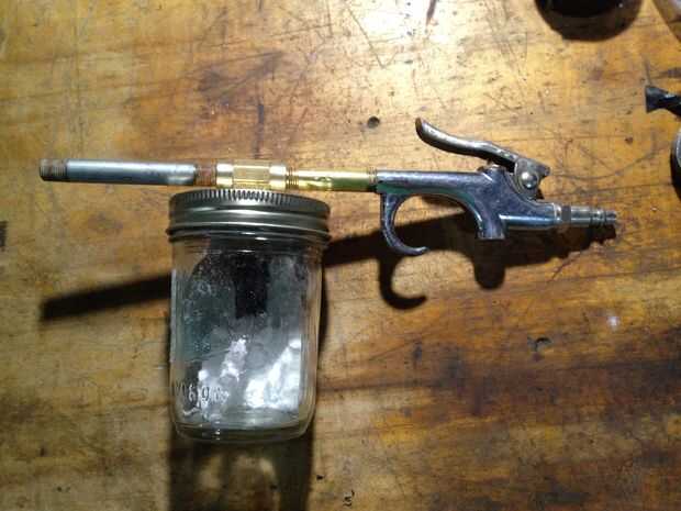 - Primero poner bicarbonato de sodio en el tarro de masón luego atorníllelo en el blaster