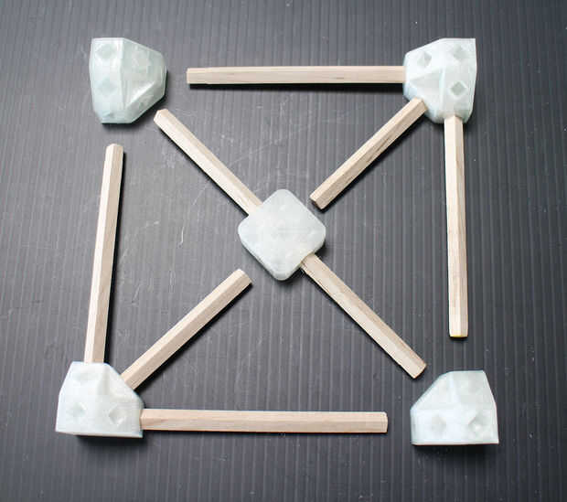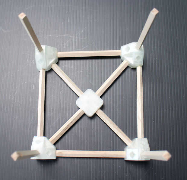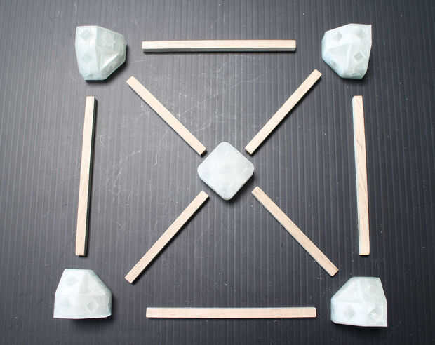 Grab el 3D juntas y su paquete de corte abajo de varillas y los ponen sobre una superficie plana.