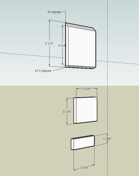 2 piezas top - 5 1/2" de largo con un bisel de 45 grados corte en un lado y un bisel de 67,5 grados corte en otro