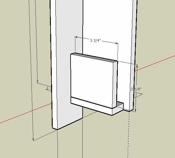 La pieza frontal se alineará con las piezas laterales en la parte superior y debe ser 1 5/8" más corto en la parte inferior.