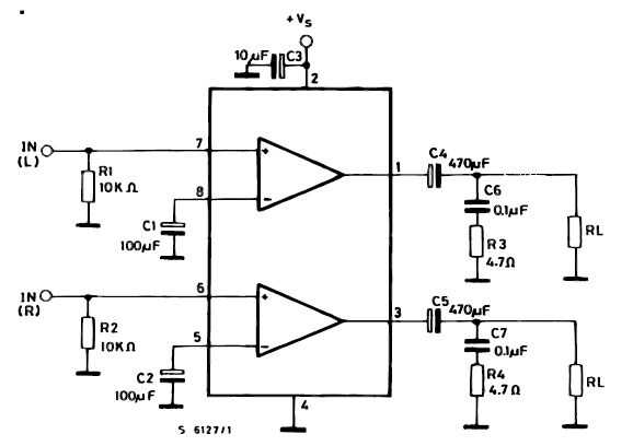 Siguiente paso es construir el circuito. Usé un amplificador TDA2822M y el esquema que se muestra en su hoja de datos. Usted puede construir su circuito con cualquier amplificador IC que usted elija.